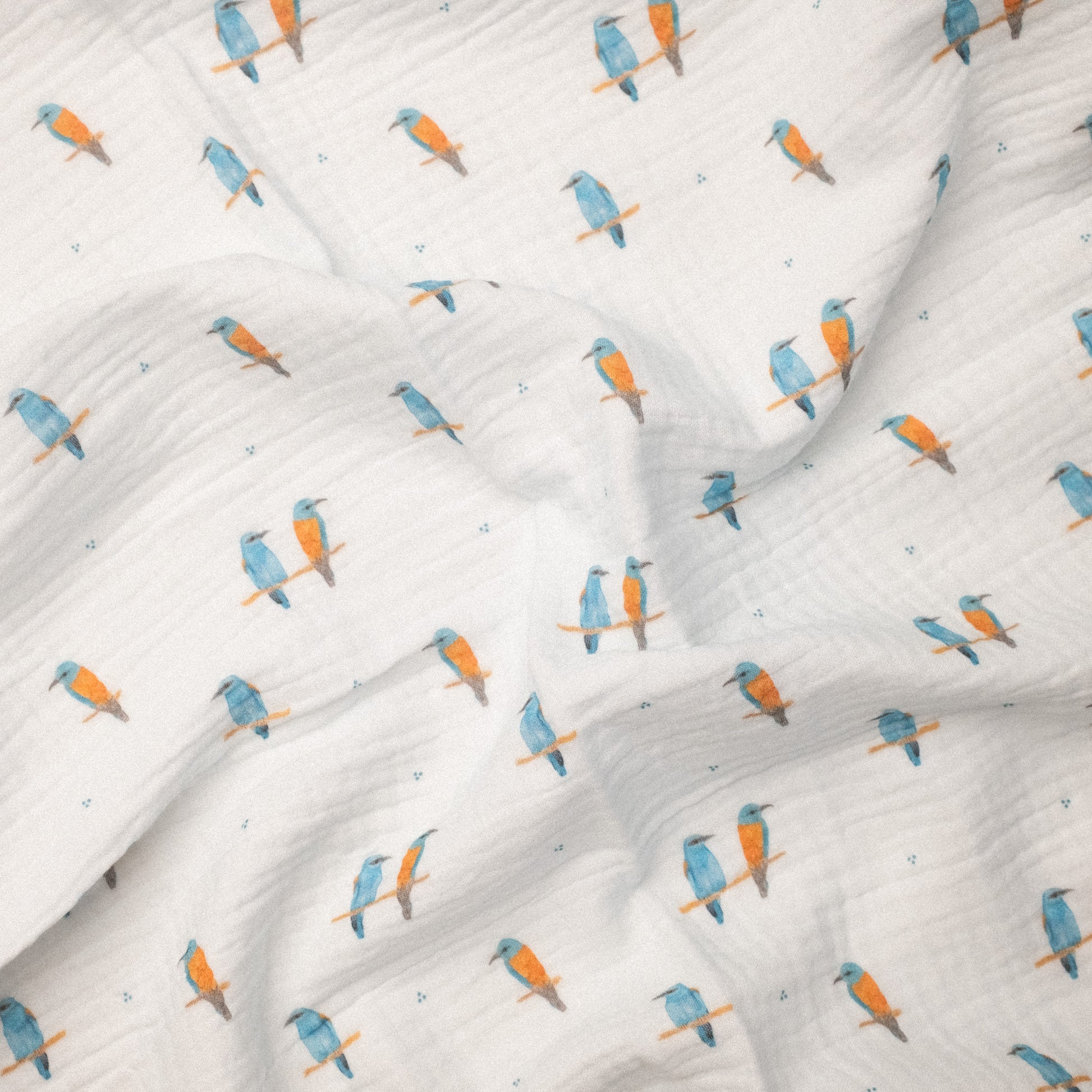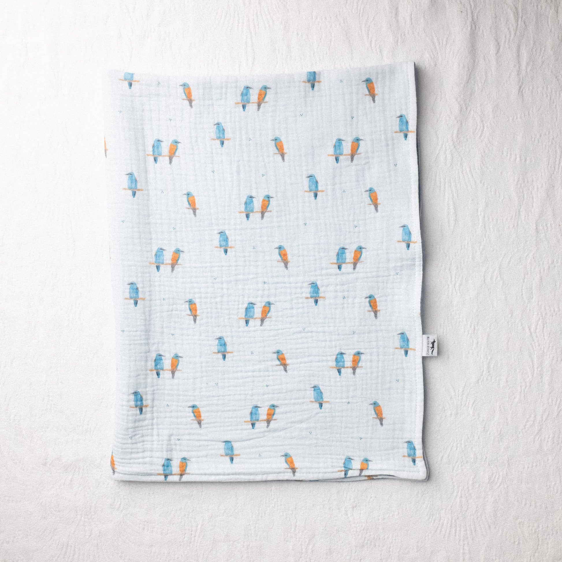 Kétrétegű muszlin takaró - Ragyogókék szalakóta