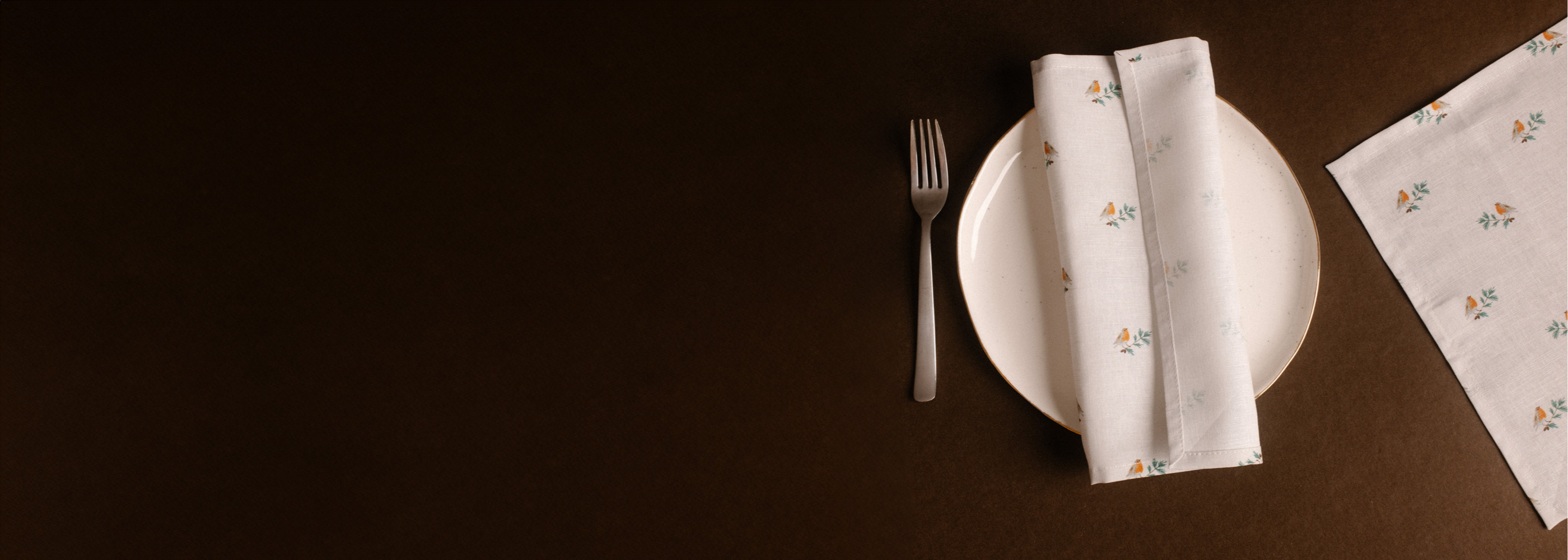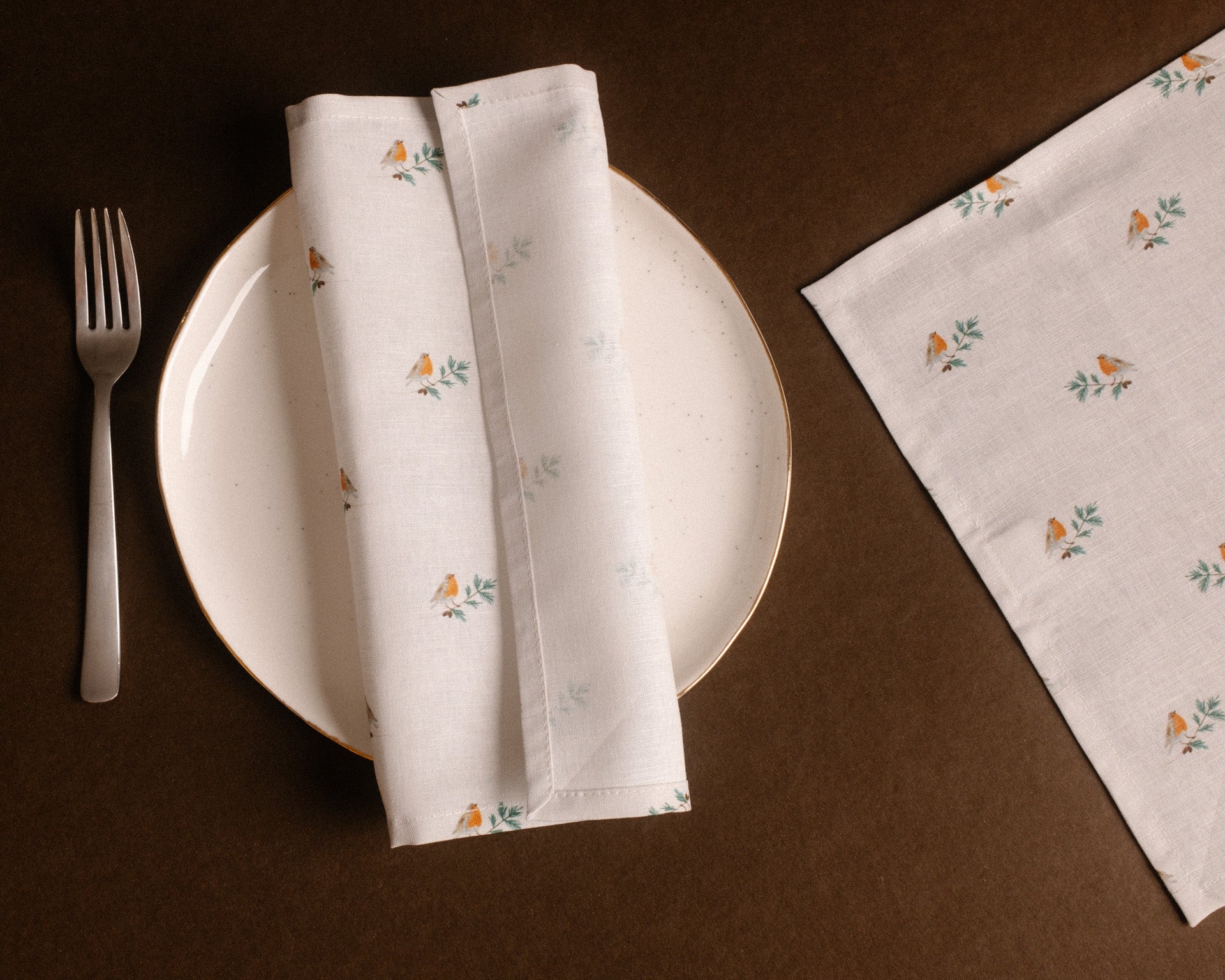 A vörösbegyekkel díszített szalvéta letisztult és finom stílusú, amely bármilyen ünnepi asztal dísze lehet.
