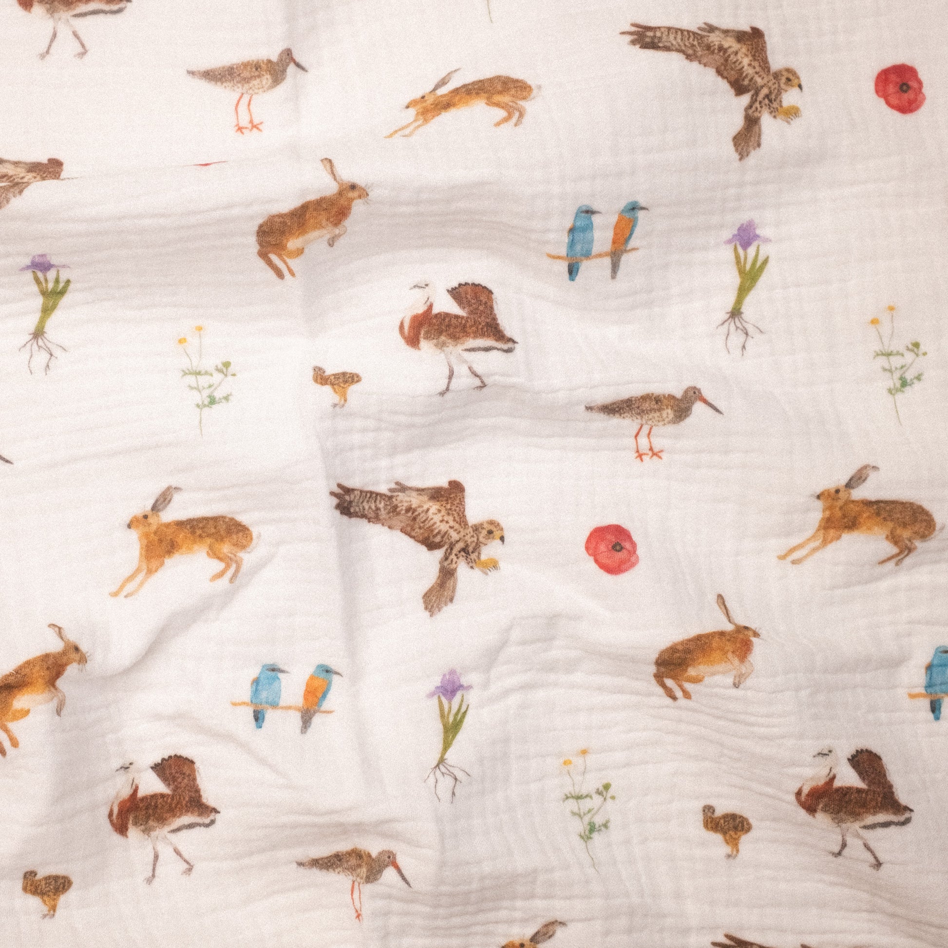 Mintás oldalon: 100% organikus pamut muszlin triplagéz anyag