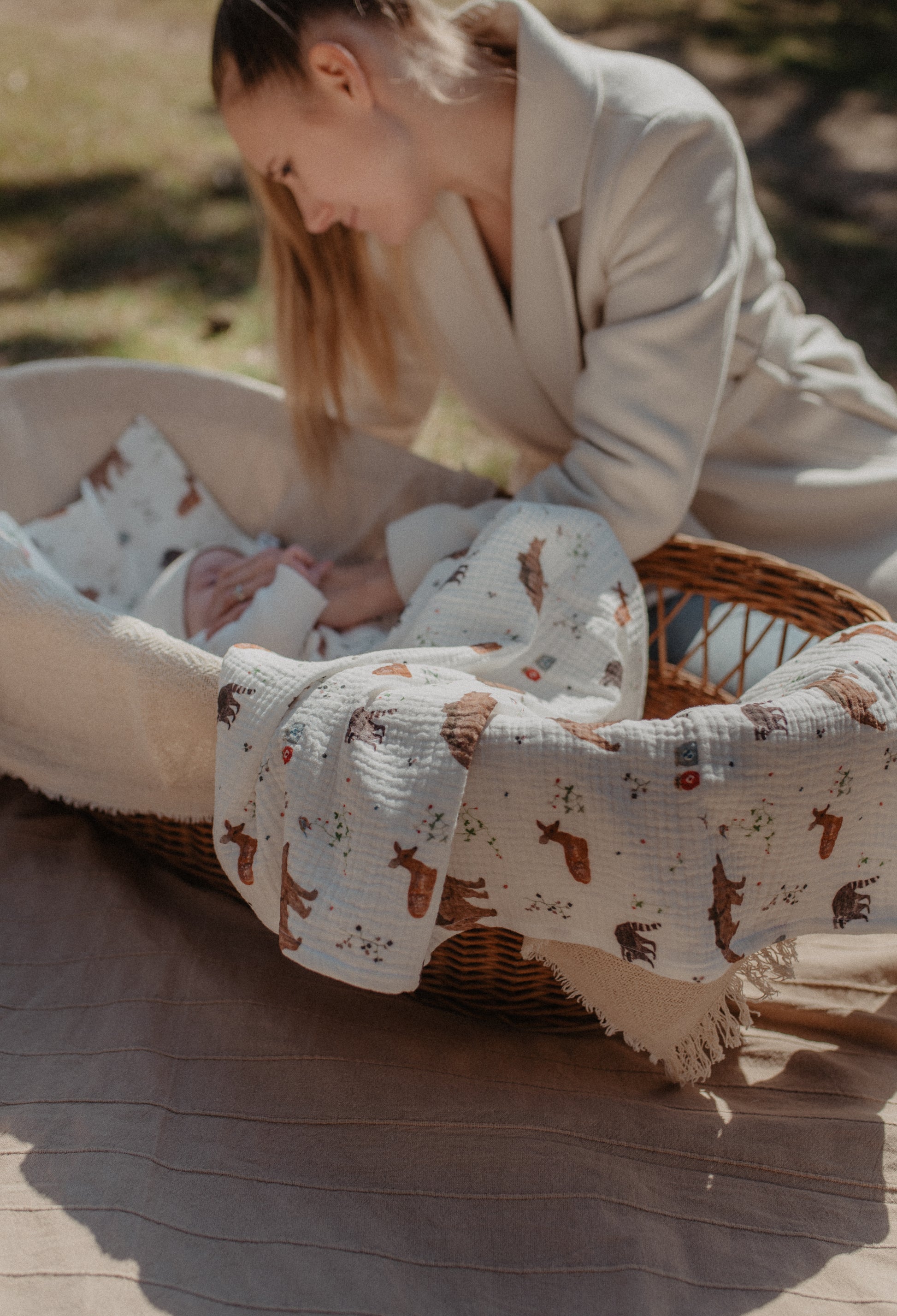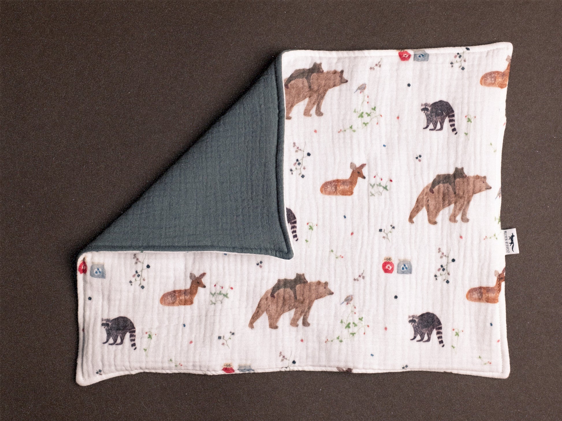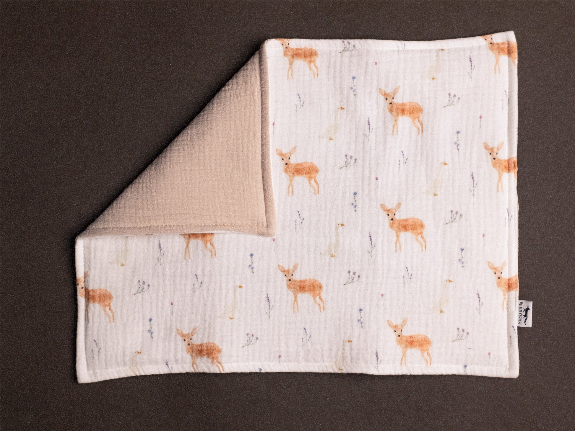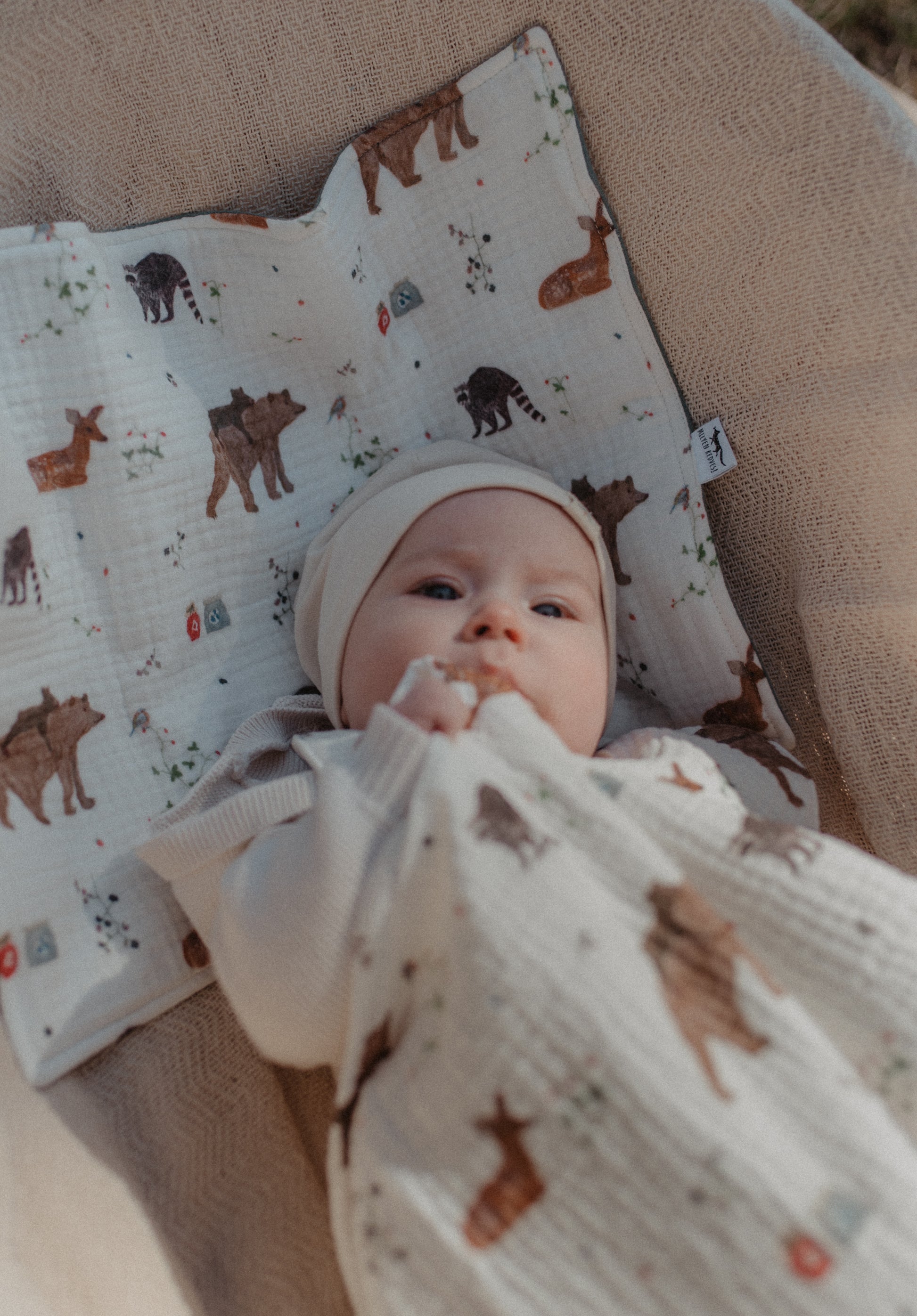 - Anyag: 100% légáteresztő muszlin, belül vékony flíz réteggel a puhaságért.