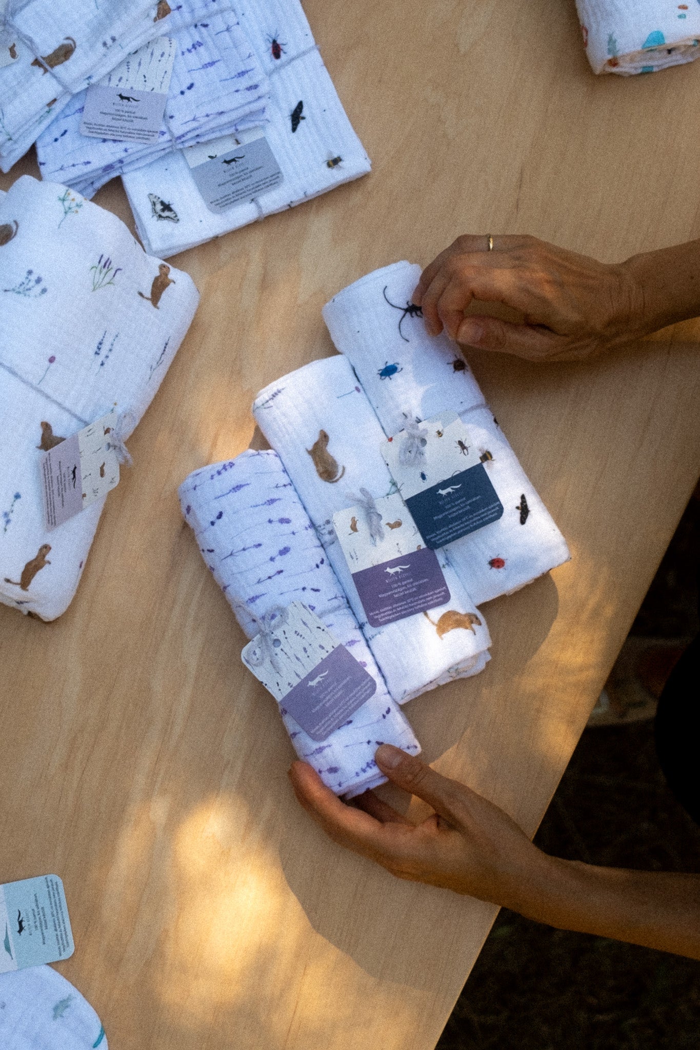 A Milyen Kedves! textil pelusok nem csak szépek, hanem meglepően praktikusak is: lehet belőlük vállkendő büfizéshez, takaró a babakocsiban, nyálkendő, árnyékoló vagy a baba kedvenc alvókája. 100% légáteresztő muszlinból készülnek, amit finom, kézzel festett mintáink díszítenek – így minden darab egy kis természetet visz a hétköznapokba.