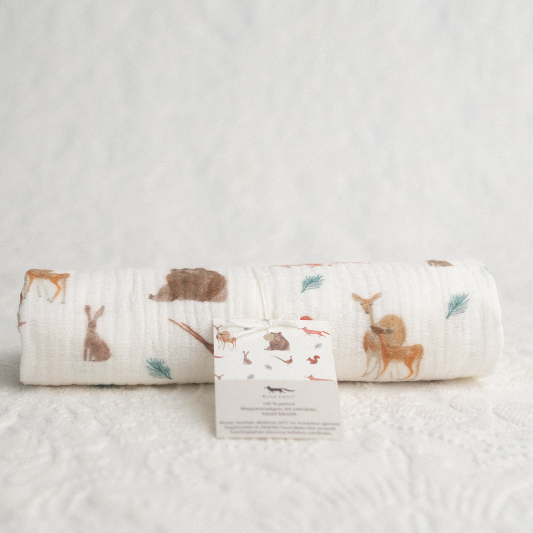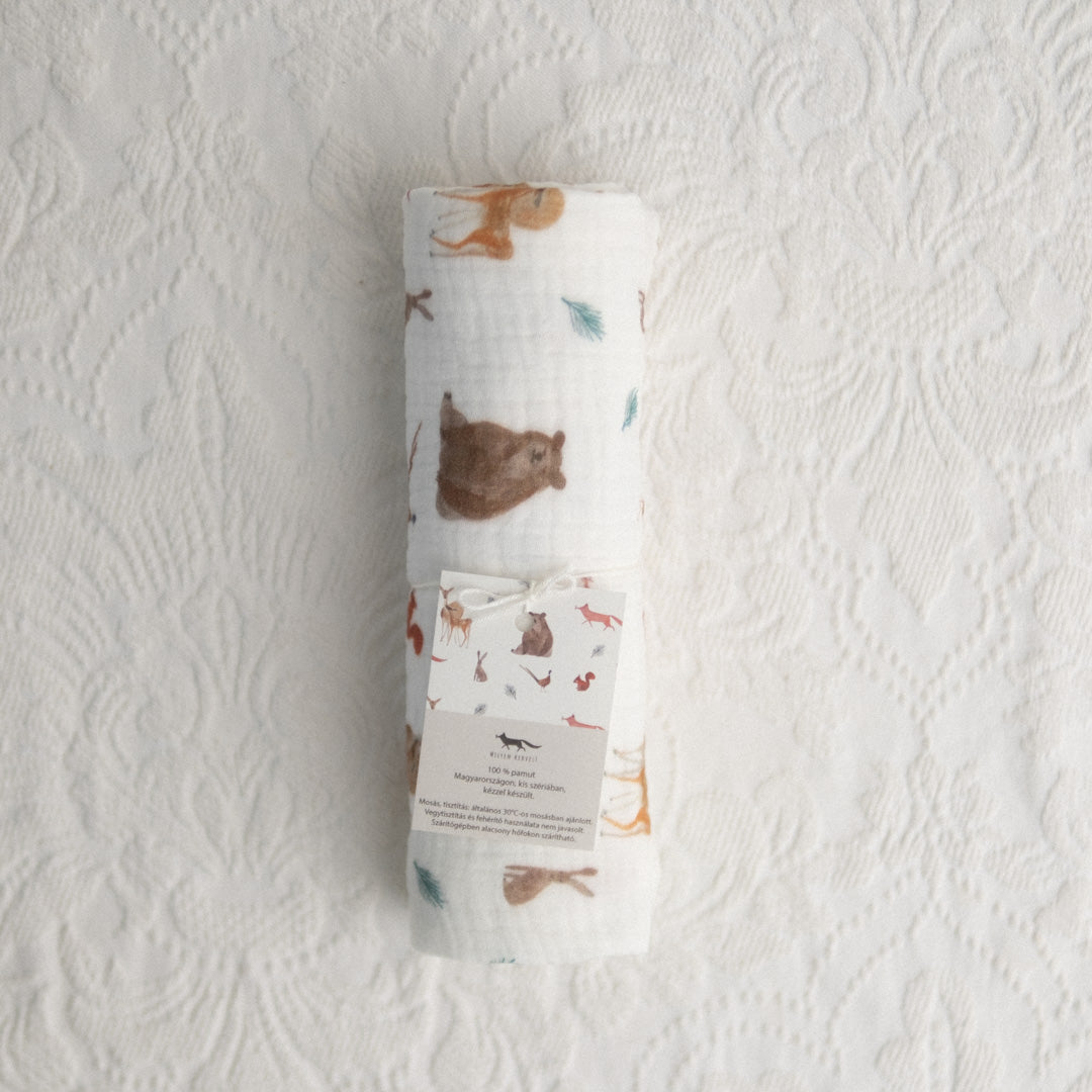 Muszlin babakendő - mackós, erdei állatos