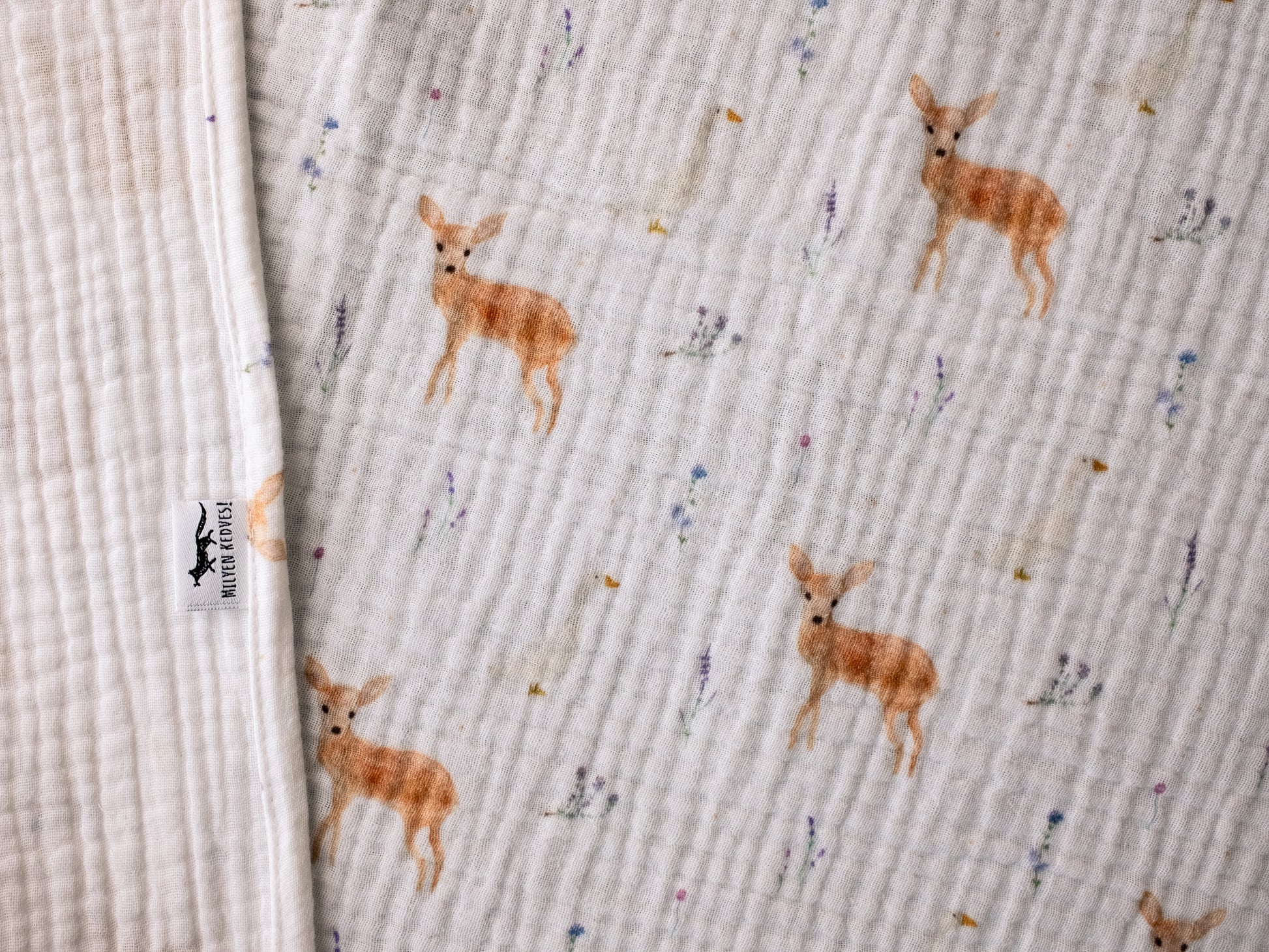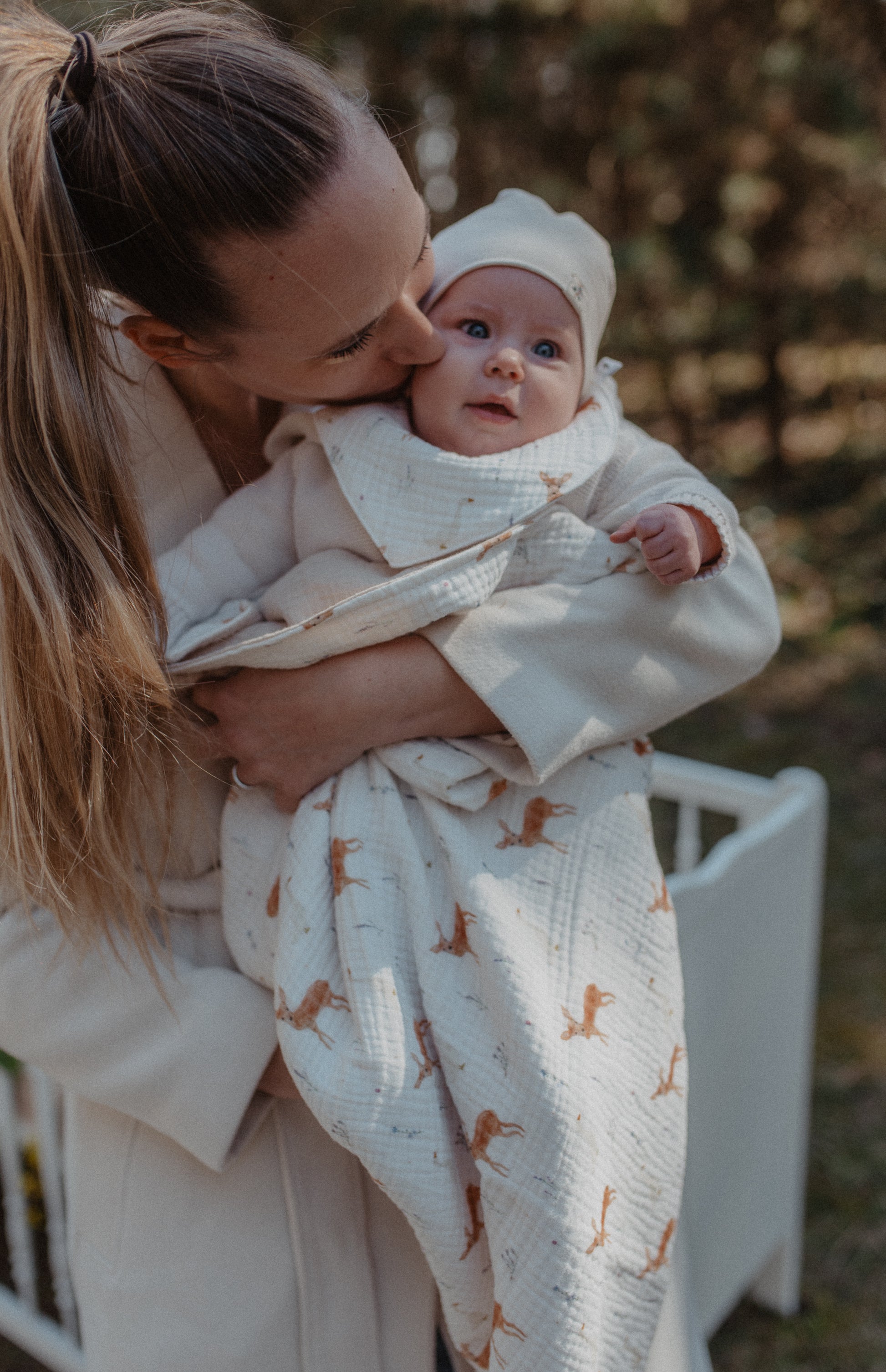 A Milyen Kedves! textil pelusok nem csak szépek, hanem meglepően praktikusak is: lehet belőlük vállkendő büfizéshez, takaró a babakocsiban, nyálkendő, árnyékoló vagy a baba kedvenc alvókája. 100% légáteresztő muszlinból készülnek, amit finom, kézzel festett mintáink díszítenek – így minden darab egy kis természetet visz a hétköznapokba.
