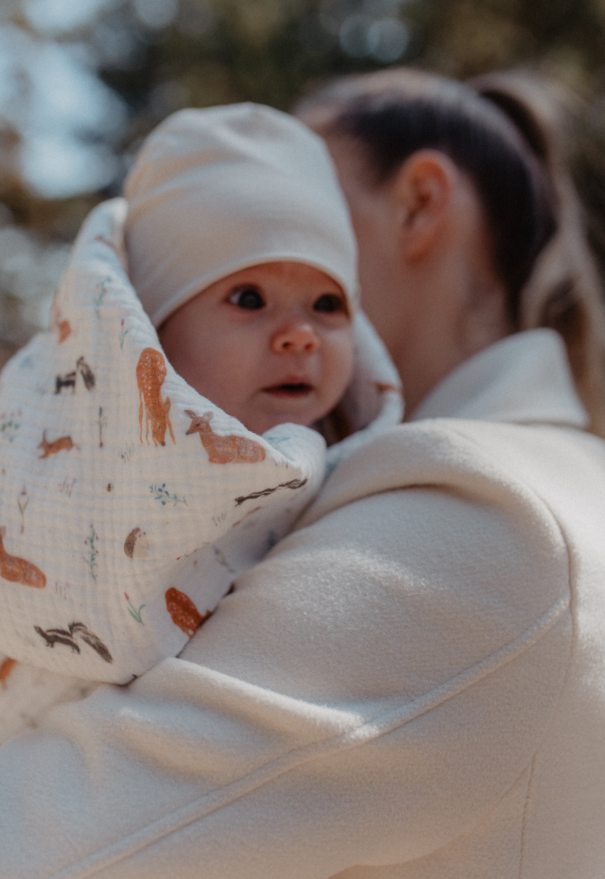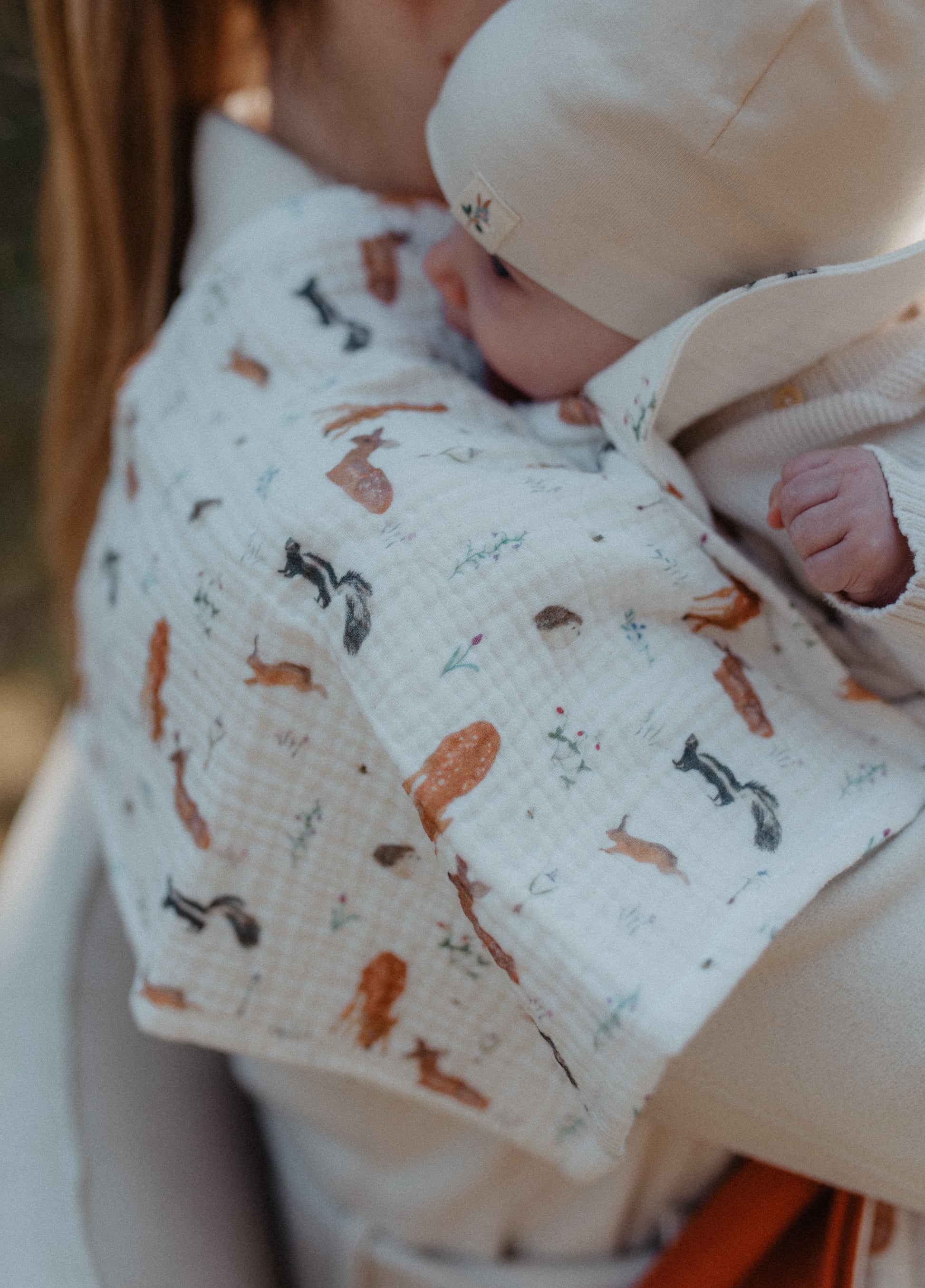 A Milyen Kedves! textil pelusok nem csak szépek, hanem meglepően praktikusak is: lehet belőlük vállkendő büfizéshez, takaró a babakocsiban, nyálkendő, árnyékoló vagy a baba kedvenc alvókája. 100% légáteresztő muszlinból készülnek, amit finom, kézzel festett mintáink díszítenek – így minden darab egy kis természetet visz a hétköznapokba.